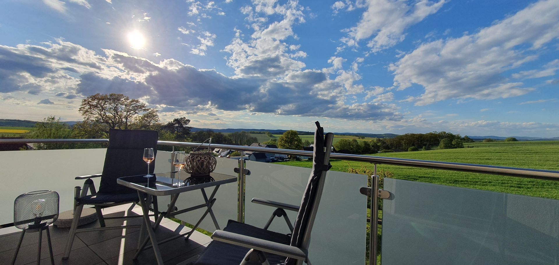 Auf dem zugehörigen Balkon mit tollem Ausblick können Sie den Tag bei Sonnenuntergang ausklingen lassen.